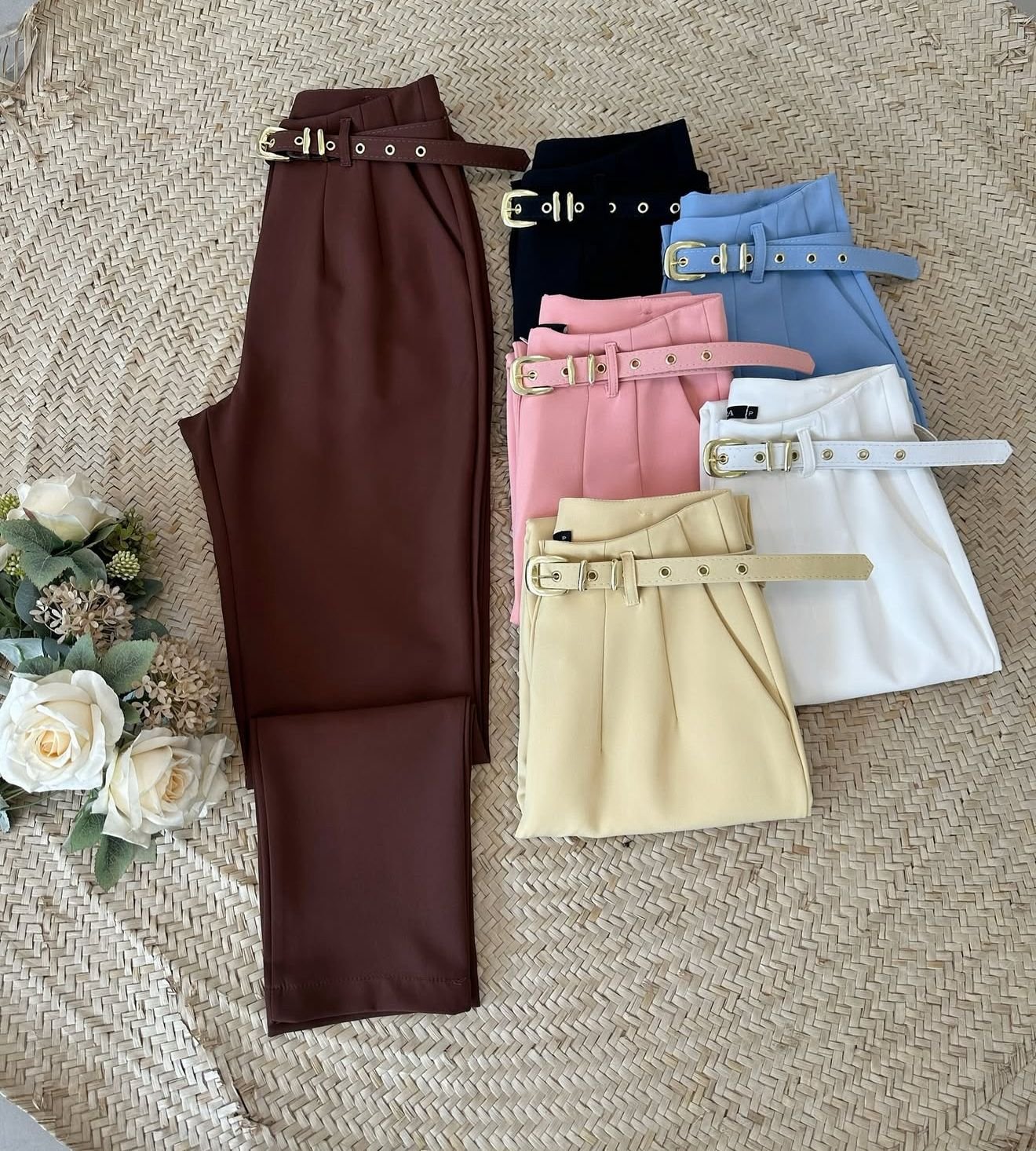Calça Maya: Alfaiataria acompanham cinto e possuem um lindo, perfeitas para quem ama se vestir com estilo e qualidade.