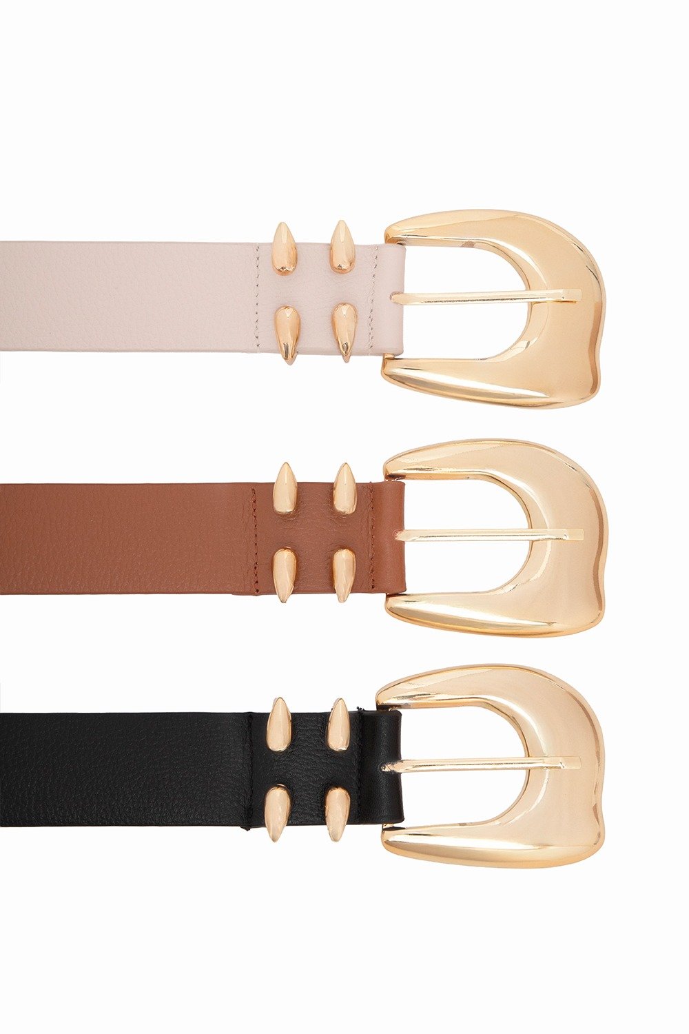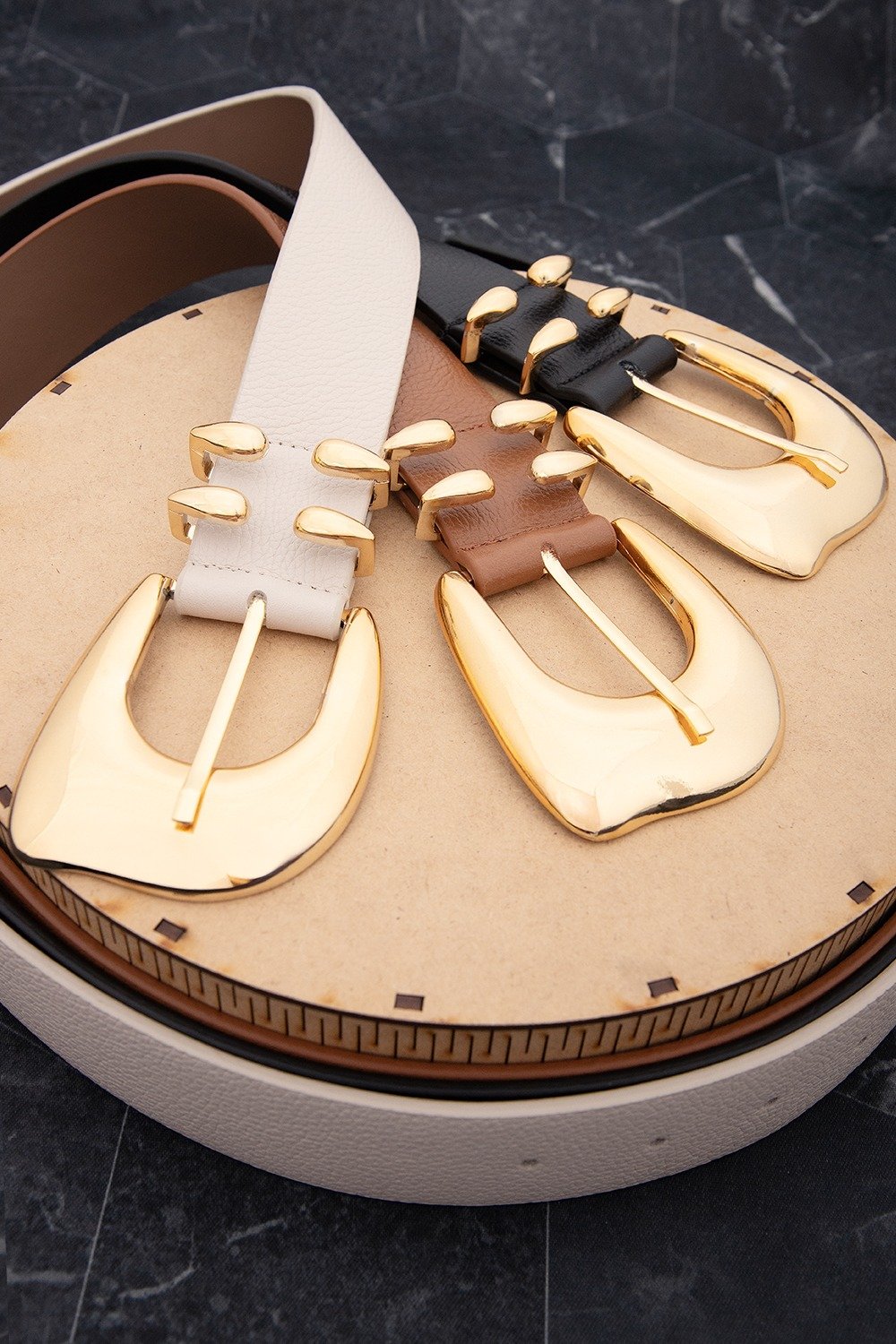 Cinto em couro com textura sofisticada, fivela em metal dourado de design marcante. Peça versátil que une elegância e impacto, ideal para valorizar qualquer produção. Tamanho M (100 cm) Veste (M 40-42) Largura do Cinto 3,7 cm Comprimento da Fivela 8 cm , Largura da Fivela 7 cm Cinto 100% Couro, Forro 100% PU, Fivela 100% Metal Zamak.