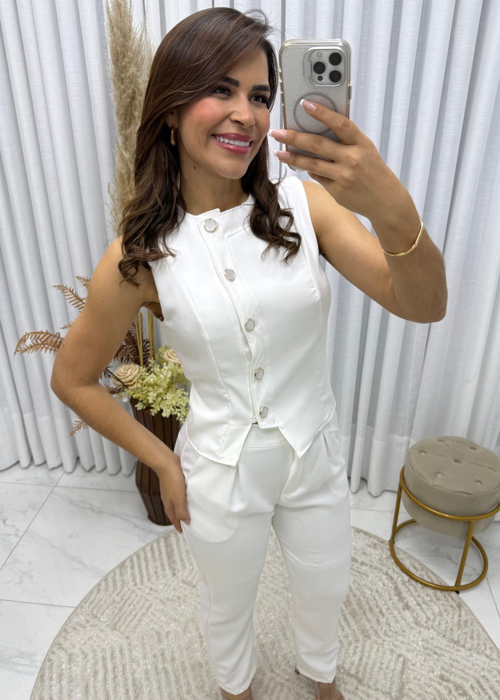 Conjunto em alfaiataria que une conforto, caimento impecável e muito estilo! Coletinho estruturado + calça que modela super bem.