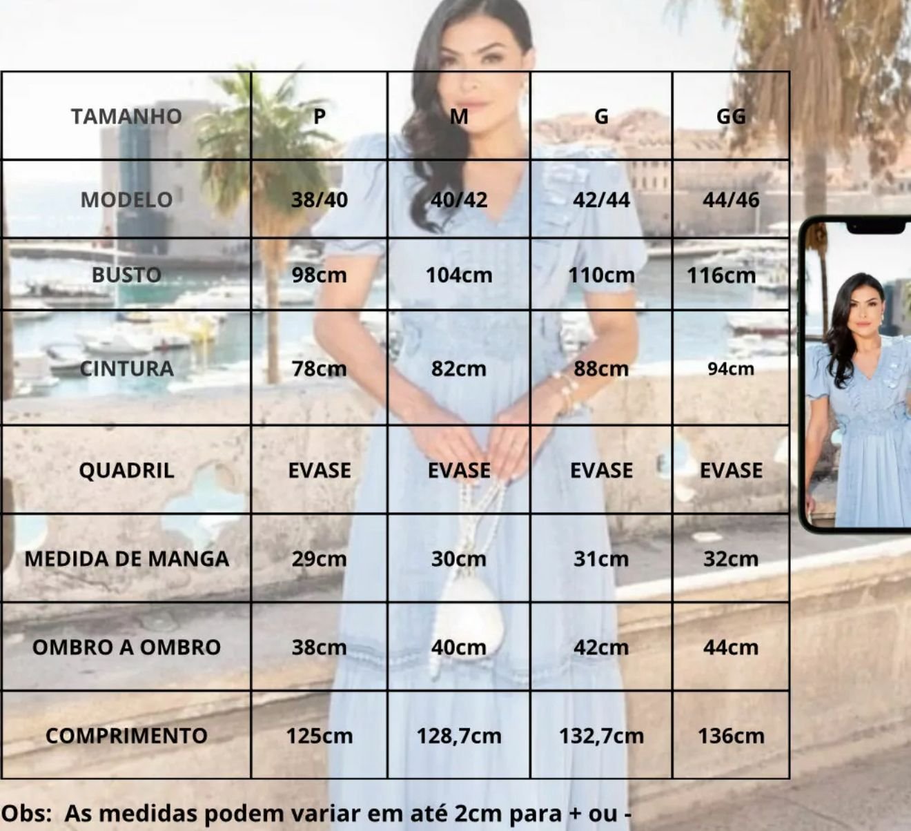 Um vestido versátil, ideal para ocasiões especiais, passeios ou eventos ao ar livre, sempre transmitindo feminilidade e elegância.